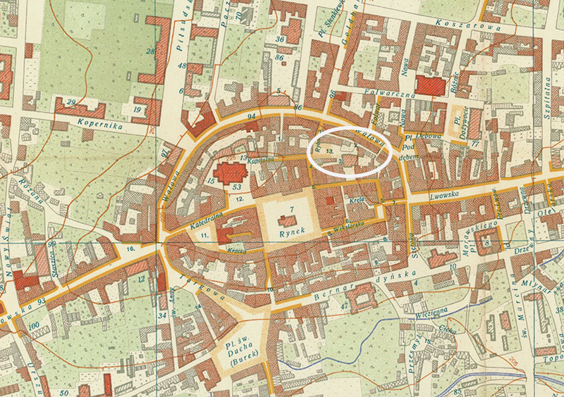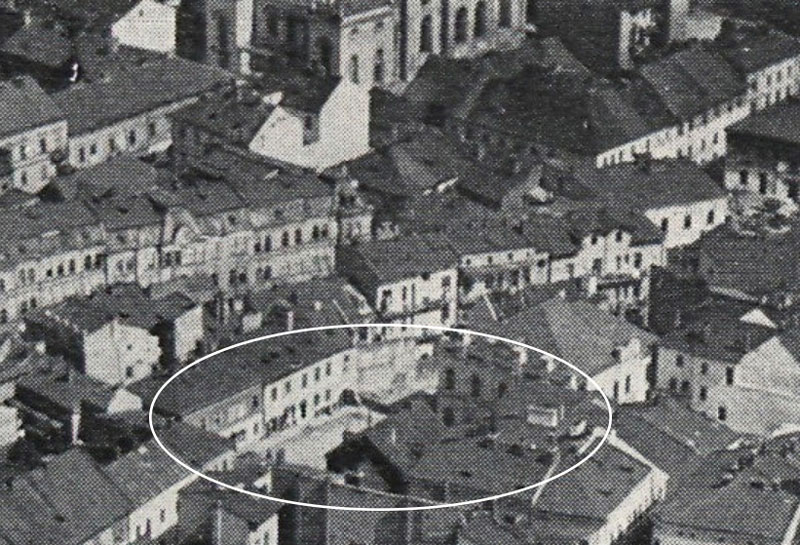 Źródło: Youtube - Tarnowskie Mury Miejskie cz.3 na www.iUlotka.pl.: Słynne Tarnowskie Barkoleum, ściana północna placu, obok nieistniejącej kamienicy. |